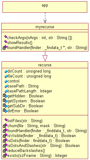 the basic recurse class. The foundHandler() function is marked as a virtual function so that it