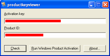 This program displays the Windows Activation Key and Product ID on Windows XP. I was fed